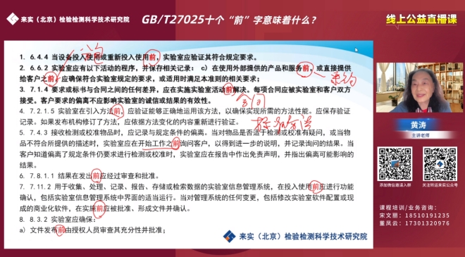 黄涛院长主讲GB/T 27025 十个“前”字意味着什么——公益直播圆满举行